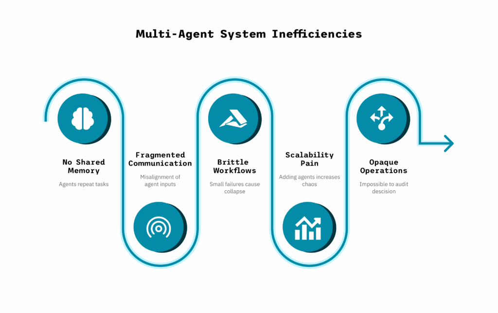 Today’s MAS often acts like loosely coupled tools rather than a synchronized team. The result is unpredictability, an unacceptable outcome for enterprise use cases where accuracy, compliance, and auditability matter.