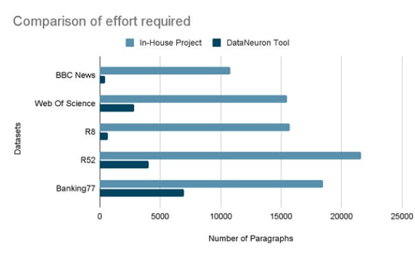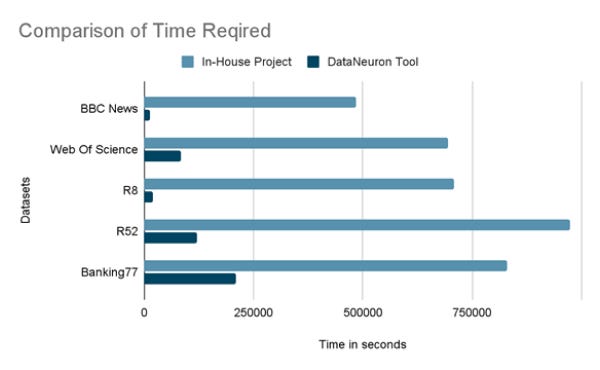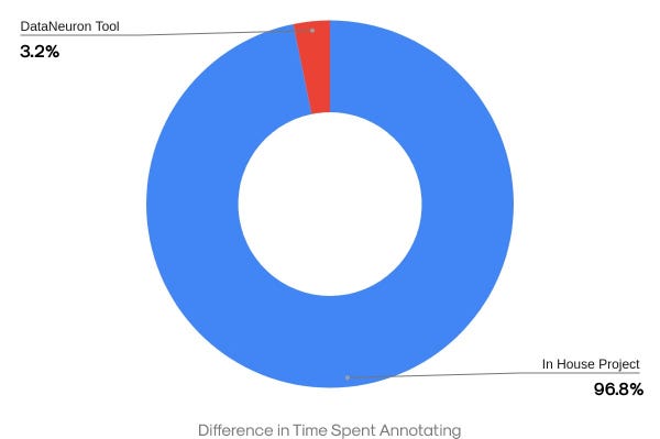 Difference in time spent annotating between an in-house solution and DataNeuron.