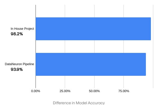 When conducting this case study, the accuracy we achieved for the model trained by the DataNeuron ALP was 93.9% while the accuracy of model trained by the in-house project was 98.2%.