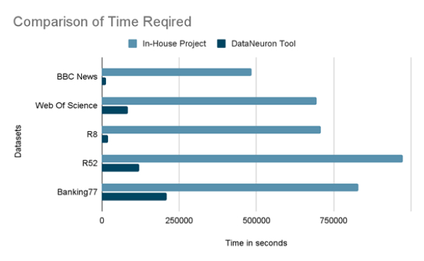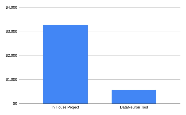 Difference in time spent annotating between an in-house solution and DataNeuron.
