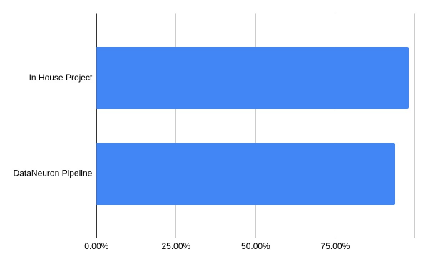 When conducting this case study, the accuracy we achieved for the model trained by the DataNeuron ALP was 93.9% while the accuracy of model trained by the in-house project was 98.2%.